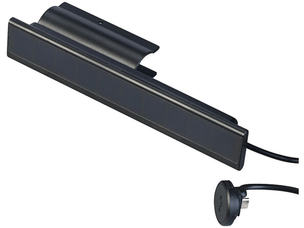 - Chargement par panneau solaire ou par USB (adaptateur secteur et/ou batterie nomade non fournis)
