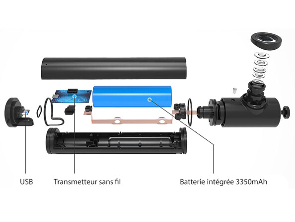 - Alimentation caméra : batterie Li-ion 3300 mAh permettant jusqu'à 500 transmissions pour un chargement de la batterie