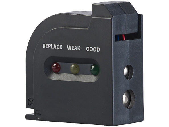 - Testeur de piles amovible avec 3 LED pour affichage clair de la capacité restante : bonne / faible / vide
