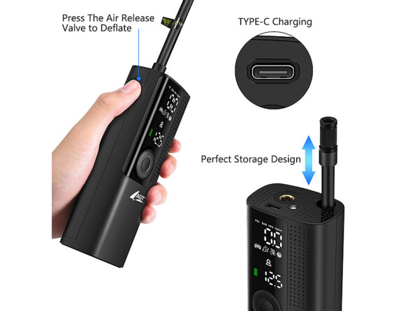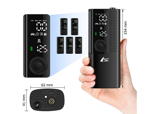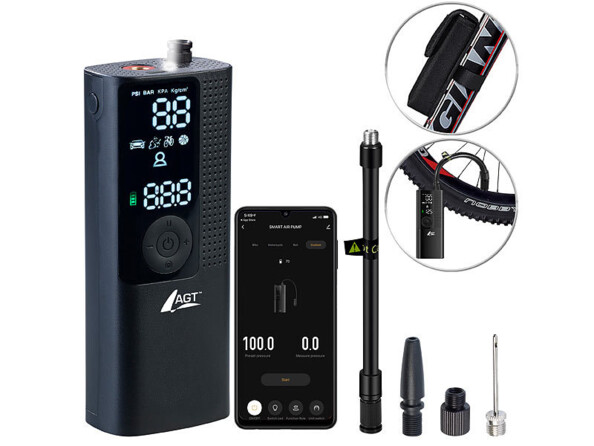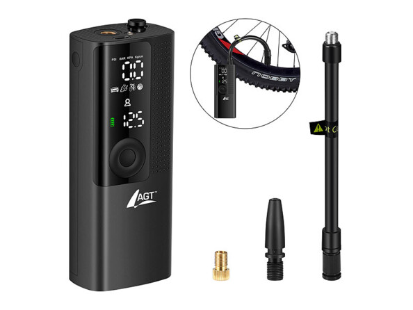 Polyvalente, la mini pompe à air AGT gonfle en un clin d'œil pneus de vélo/moto/voiture, matelas, ballons et autres jouets gonflables.