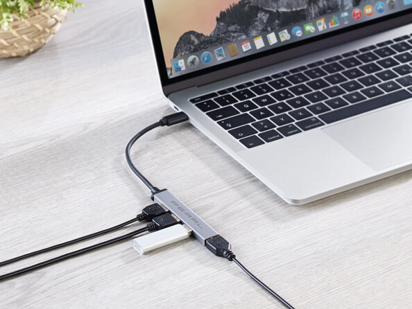 Ces nouveaux hubs USB-C passifs de la marque Pearl transforment en un clin d'œil un connecteur USB-C en 4 ports USB-A supplémentaires. Disque dur externe, imprimante et clés USB peuvent enfin être branchés simultanément à votre ordinateur, qu'il soit fixe ou portable.