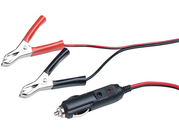 - Câble avec pinces crocodiles pour charger une batterie 12 V