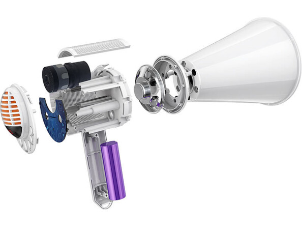 Outre les annonces vocales, le porte-voix peut également diffuser de la musique à partir d’un smartphone connecté via bluetooth ou d’une clé USB insérée dans le port correspondant de l’appareil. Grâce à la puce DSP intégrée, le mégaphone reproduit votre musique sans écho ni réverbération.