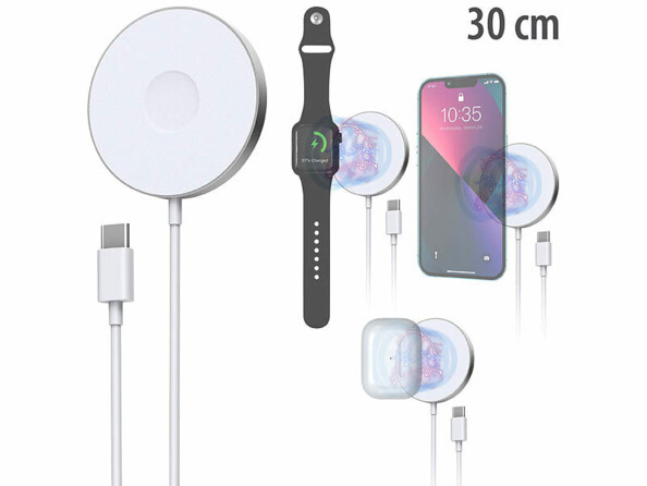 Chargeur rapide sans fil Qi/MagSafe 15 W / 30 cm