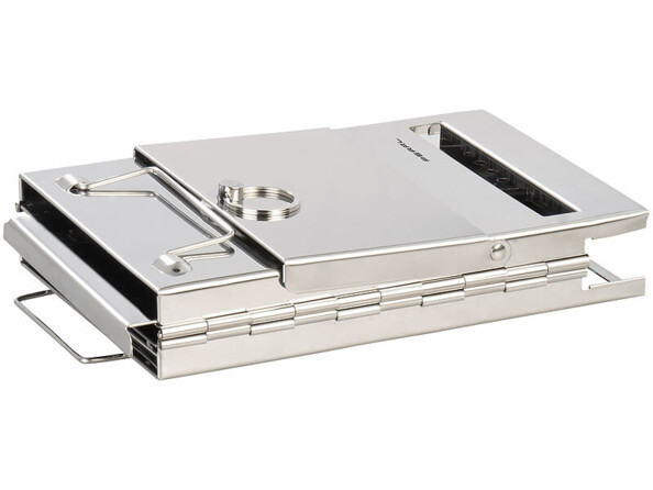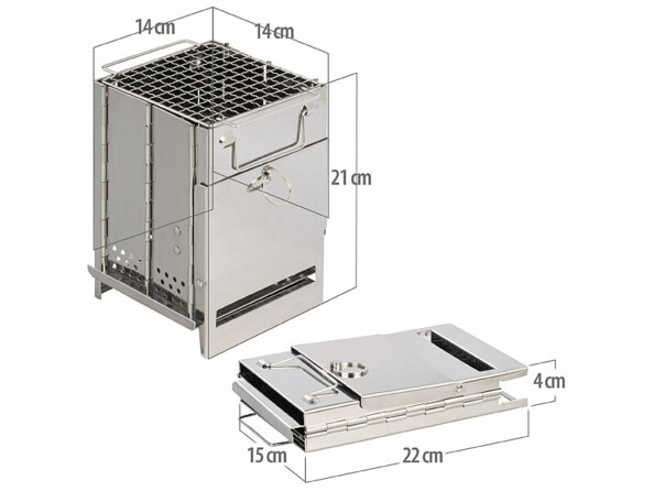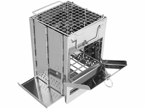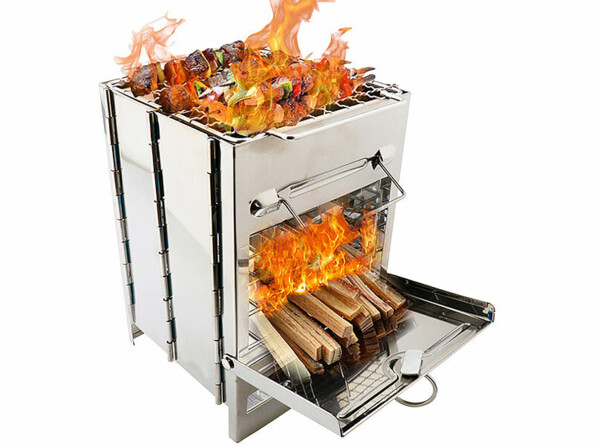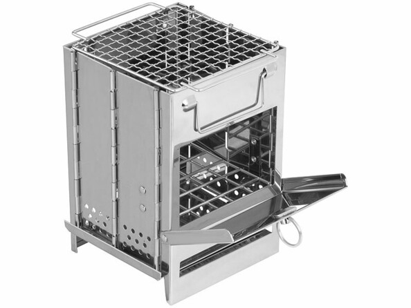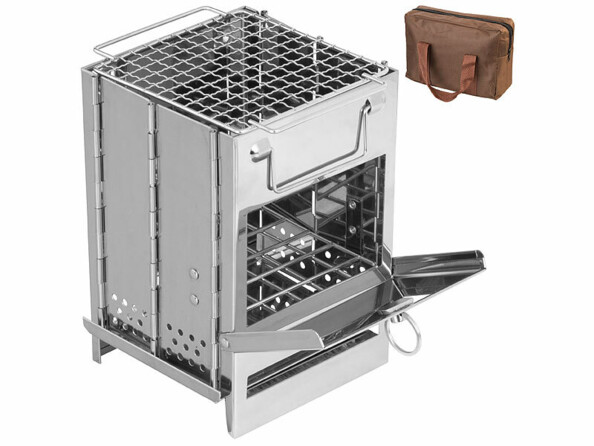 Avec ce réchaud à bois de camping pliable de la marque Pearl, vous pouvez cuire de la viande, du poisson ou encore des légumes. Pas besoin d'électricité : utilisez simplement du bois ou du charbon à barbecue. Il peut aussi vous dépanner en cas de panne de courant, notamment en hiver.