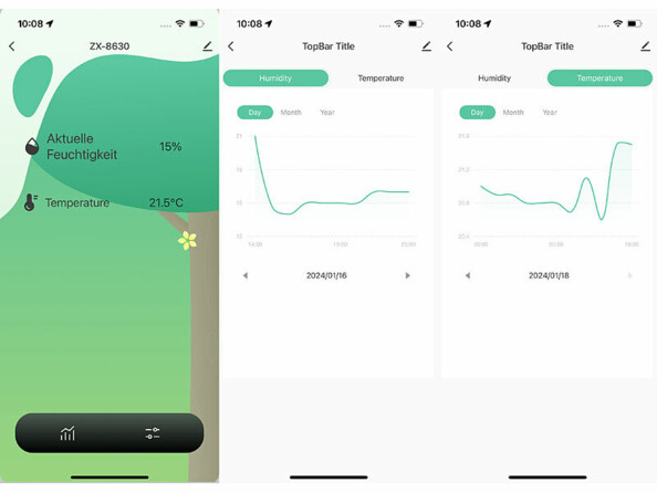 Gardez le contrôle total grâce à l'application ELESION : surveillez les valeurs mesurées confortablement depuis votre smartphone. Grâce à la passerelle en option, vous recevez des notifications où que vous soyez dans le monde lorsque vos plantes ont besoin d'être arrosées.