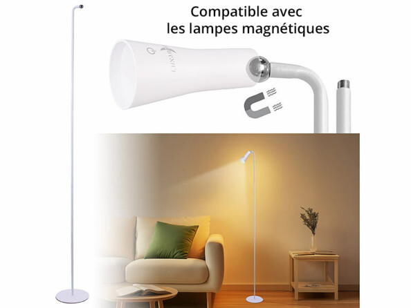- Support sur pied de salon pour lampe magnétique coloris blanc de la marque Lunartec