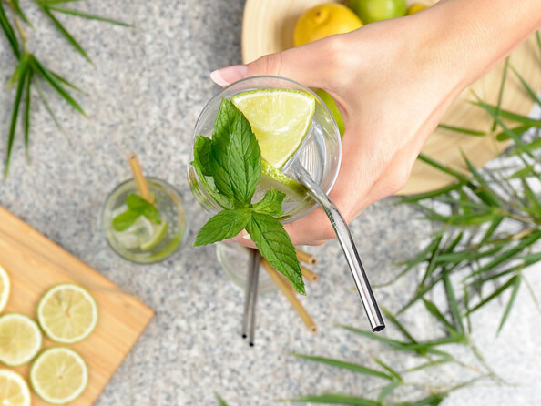 Une alternative élégante aux pailles en plastique : ces jolies pailles en acier de la marque Rosenstein & Söhne confèrent une allure chic à vos boissons et peuvent être réutilisées à volonté.