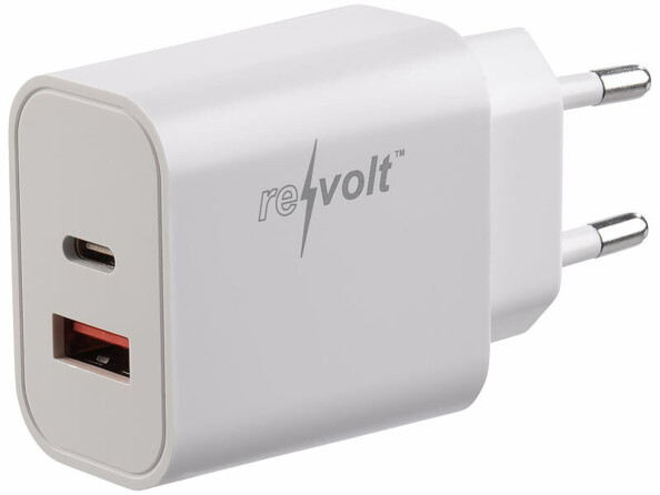 - Adaptateur secteur USB-A Quick Charge 3.0 et USB-C Power Delivery de la marque Revolt