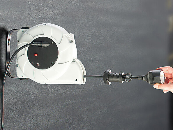 Les deux enrouleurs et leur câble de rallonge de 9 mètres de la marque Revolt vous procurent une alimentation électrique flexible ainsi qu’une grande liberté de mouvement.